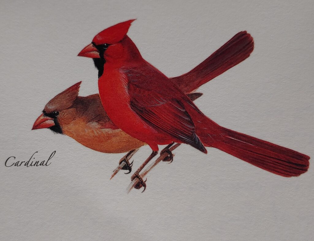 Perhaps I should think of the cardinals as death’s presence gracing my life – acknowledge that death is real and appreciate the winged reminder that I will soon enough be a departed soul. It might make talking about death easier; it might make talking about death a relief.